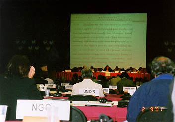政府間会議の行動計画を審議する政府代表と国連代表。NGOは傍聴ができたが、争点となったテーマの非公式協議は非公開であった。 |