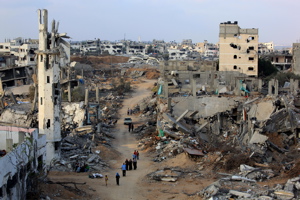 「国境」を越えると、イスラエル軍地上部隊に侵攻されたガザ北部から北東部にかけての地区は、凄まじいまでに破壊されていた。徹底的な空爆や砲撃で、ひとつの町がそっくりがれきの山に変わった場所もあった。これほどまでに徹底した破壊は、2000年9月から5年間激しい戦闘が続いた第二次インティファーダ(イスラエルによる占領への抵抗運動)や、2008年12月から2009年1月にかけての大規模侵攻でも見たことがない。パレスチナ側の被害は、死者2,100人を超え、破壊された家屋は1万8千戸に及ぶ。