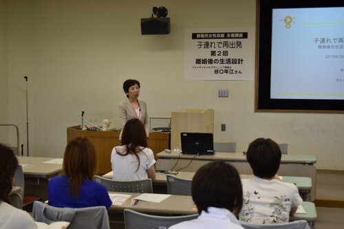 静岡市女性会館(以下、「センター」)はNPO法人男女共同参画フォーラムしずおかが指定管理者を務めている。2007年から熟年離婚をテーマにした法律講座を開催、若い世代の参加も見られた。センターの女性相談には「子どもが離婚して家に戻ってきたが...」という親の悩みが寄せられ、ニーズがあると思われたので、「子連れで再出発」をテーマに講座を開催したが、集客に苦戦する状況が続いた。限られた予算や事業枠の中で、ひとり親だけを対象に絞った事業実施は難しいこともあり、「ひとり親当事者の応援」「支援団体との協働」「既存の取組みにひとり親支援の視点を入れる」等の工夫をした取組みに切り替えた。