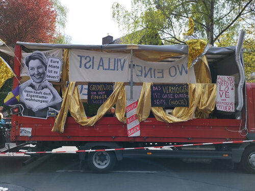 2011年から2017年までベルリンの平均年間家賃は6,840ユーロから11,520ユーロと68%も上昇した(ユーロ/円の年平均レートは2011年:111.06円、2017年:126.70円)。それでもミュンヘンなど他の大都市に比べるとやや安い水準であり、ロンドンなど西ヨーロッパの他の大都市と比べればさらに安い。こうした状況がさらなる不動産市場への投機を生んでいるのだが、そこにはベルリンが1989年まで東西に分断された都市であり、再開発がスタートしたのはそれ以降の比較的近年であるという独特の経緯がある。冷戦下で周囲を東ドイツに囲まれた西ベルリンでは労働力が不足したこともあり、現在人気のある地区であるクロイツベルクやノイケルンは当時はトルコなどからの移民労働者も多く居住する労働者階級の街だった。老朽化して放置された空き住居も多く、それらを占拠(スクウォット)する運動の波が数回に渡り起きた。またベルリンの壁崩壊後は混乱のなかで東ベルリンにおけるスクウォットも盛んとなった。スクウォットは新しい生活様式を実験し各種の政治・文化活動が活発に行われる自治空間であり、西ベルリンでは1980年代初頭のピーク時には170軒が占拠され5000人が住んでいたという。これら多数の自治空間を抱える地区は東西ドイツ再統一により突如として統一ドイツの首都の中心に位置することになり、以後激しい再開発の圧力にさらされることとなる。所有の権利そのものを問う運動であったスクウォット運動であるが、行政からの圧力もありほとんどが排除されるか、賃貸契約を結び合法化していく。合法化ののちも「ハウスプロジェクト」として地域に対し重要な役割を果たしてきている場所もまだ多く残っているが、契約更新を拒否され追い出される例もある。一例をあげるとコロナ禍のなか、クィアフェミニストハウスプロジェクトのLiebig34やKOPI Wagenplatz(テント村)、わが家の近所ではスクウォット由来ではないが80年代からの歴史ある左派バーSyndikatなどが強制排除された。いずれも多くの支援者が集まり排除に抗議した。追い出し後も物件は使用されるわけではなく放置されているケースが多く、投機目的の排除であることが伺える。
